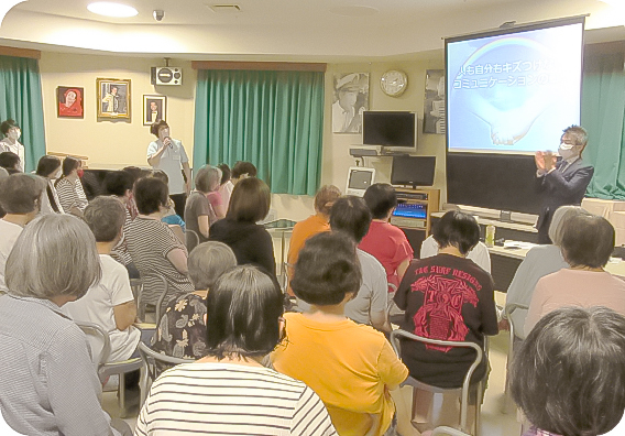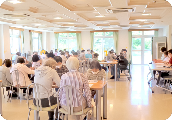 色々なクラブ活動・会議・研修会・就労訓練を行っています。多彩なメニューで楽しみながら学べる機会を提供し、健やかな人間関係を保ち、日常生活を豊か出来るように努めています。