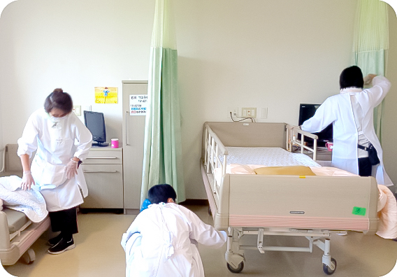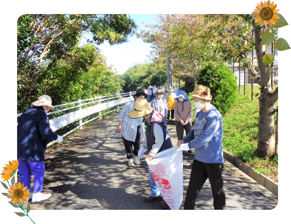 地域の中で地元道路のごみ拾いなどの活動を行っています。また地域福祉の発展のため、様々な実習生を受け入れ、地域と共に在る施設を目指しています。